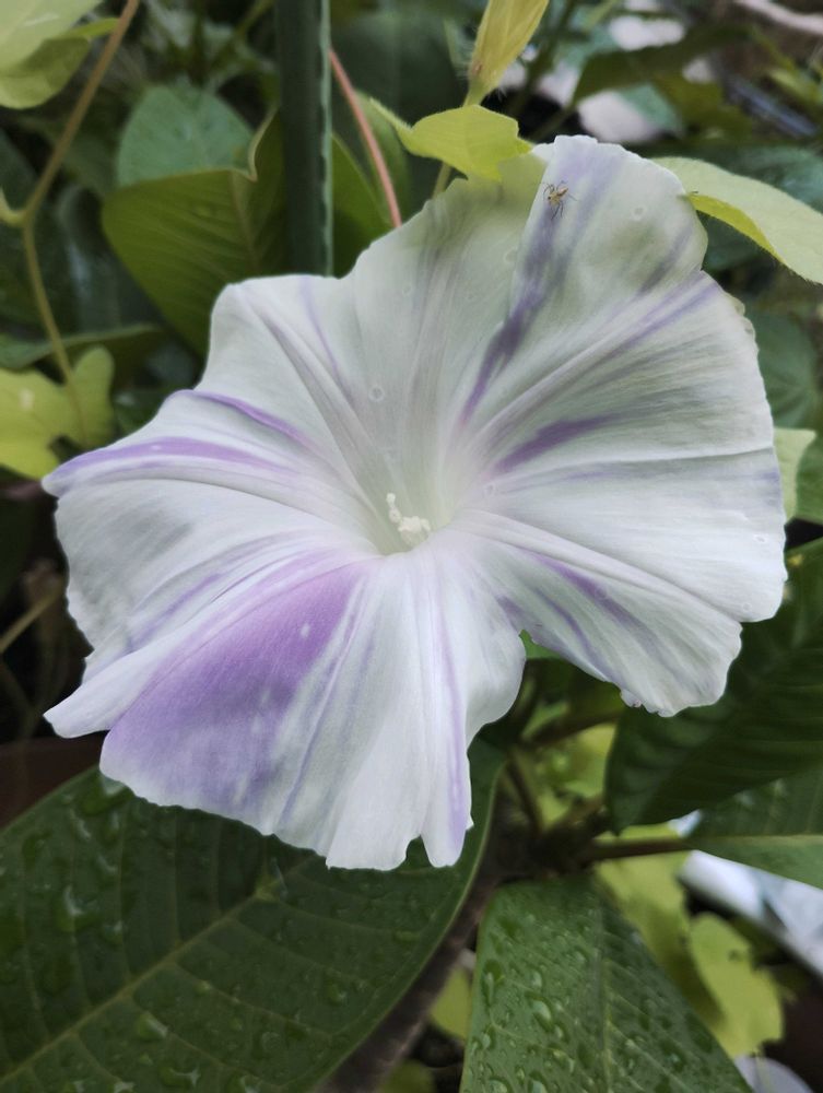久しぶりの雨☔で2日間外に出ない間に咲き始めていた変化朝顔‼️GS友さんに頂いた五色万代にも新芽が❣️