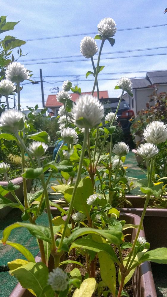 種蒔きっ子センニチコウの白い花🤍🤍🤍