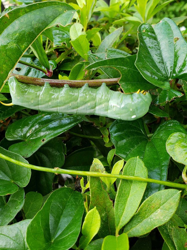 これをアゲハチョウの幼虫だと勘違いしてる人が結構いるみたいなので、お尻に角があるのはスズメガですよ!ってお知らせしました。