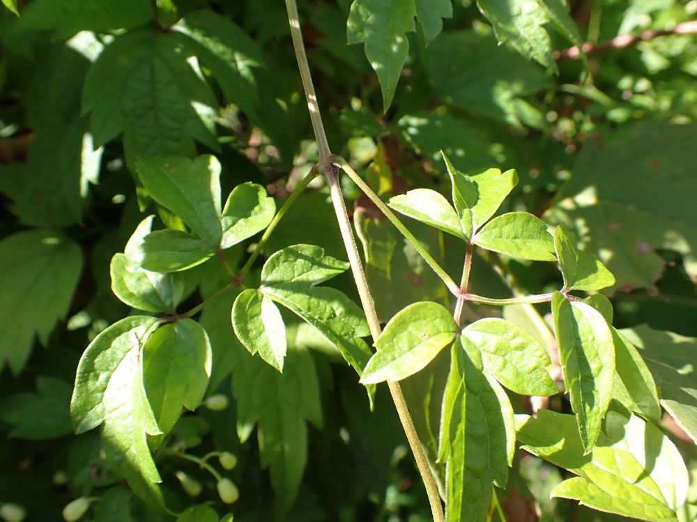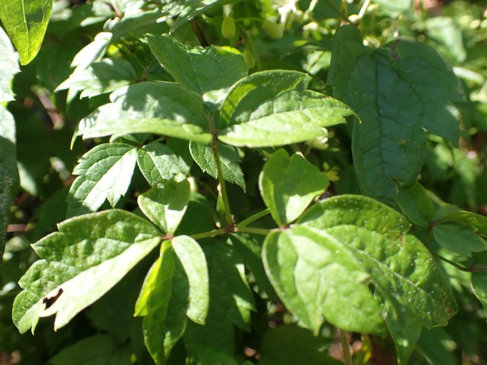 つるに、対生で、葉っぱがでていて、3枚の葉が3組、確かめられました。