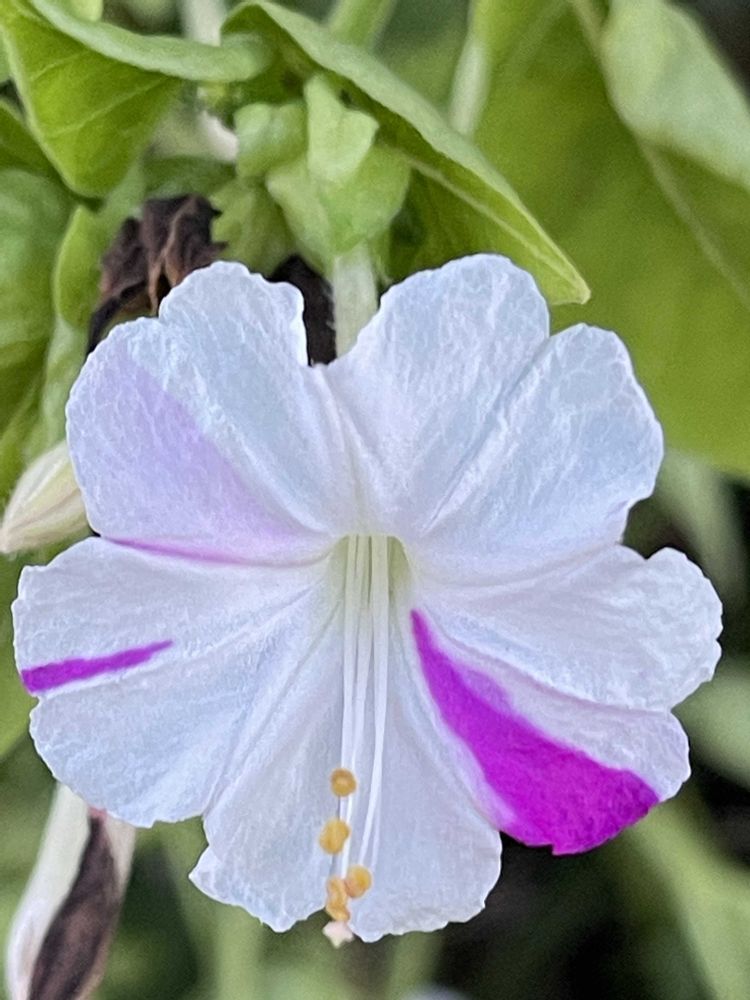 オシロイバナって同じ茎に所々にそう言う花が混じって咲くから好きなのです。☺️✨