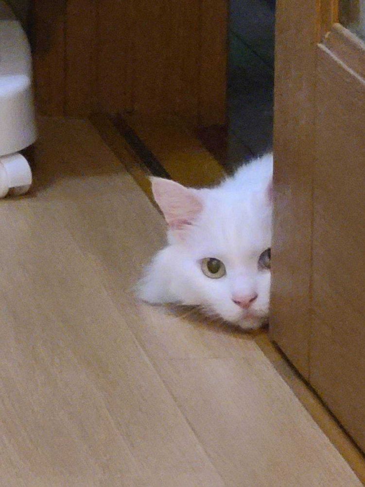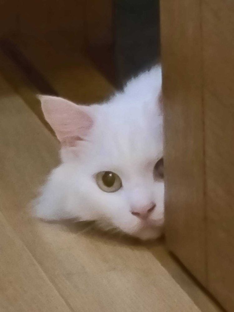 おっとりした娘で、オッドアイの白ネコです😸😸