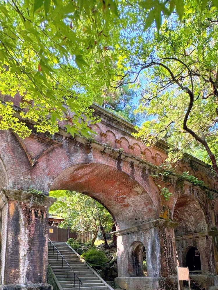 南禅寺境内にあるレトロモダンな水路閣と青モミジ♡