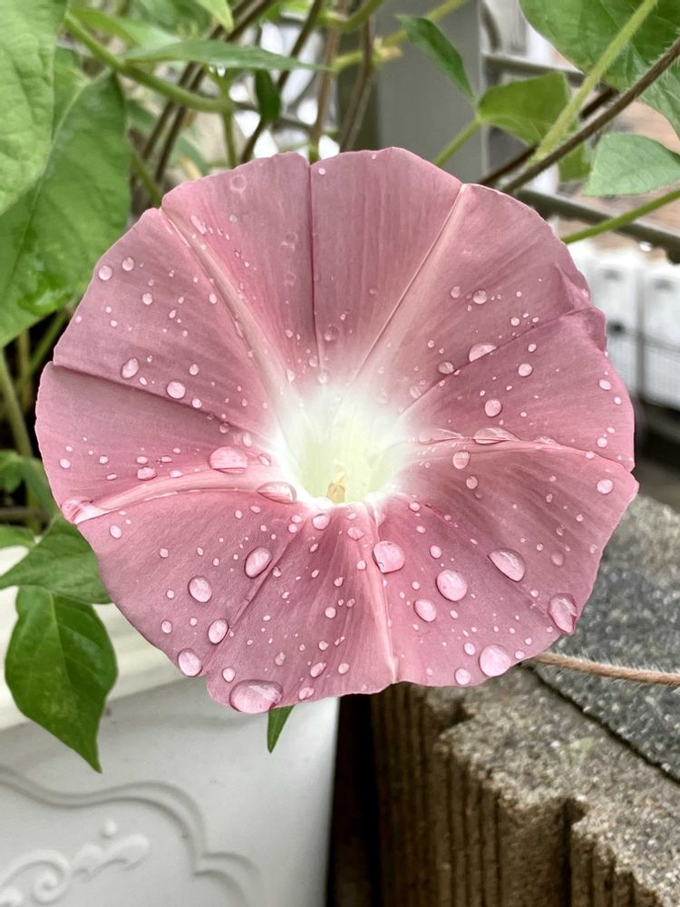 おはようございます😊涼しい朝☔️''団十郎朝顔(だんじゅうろうあさがお)。発祥は、幕末から明治に活躍した入谷(現・台東区)の植木屋(棒手振〈ぼてふ〉り)成田屋留次郎が大きく関与したと考えられています。歌舞伎の市川團十郎のファンだった山崎留次郎は、屋号を團十郎の屋号の成田屋に変え、柿渋色(団十郎茶)の丸咲きアサガオを‘団十郎’と名づけ、人気を得ました。朝顔はヒルガオ科の一年草で、奈良時代、遣唐使によって薬草としてもたらされた。漢方の効用は下剤。後に観賞用になる。鈴木其一の「朝顔図屏風」でも知られるように、江戸時代後期には好事家たちにもてはやされ、大流行したそうです。''