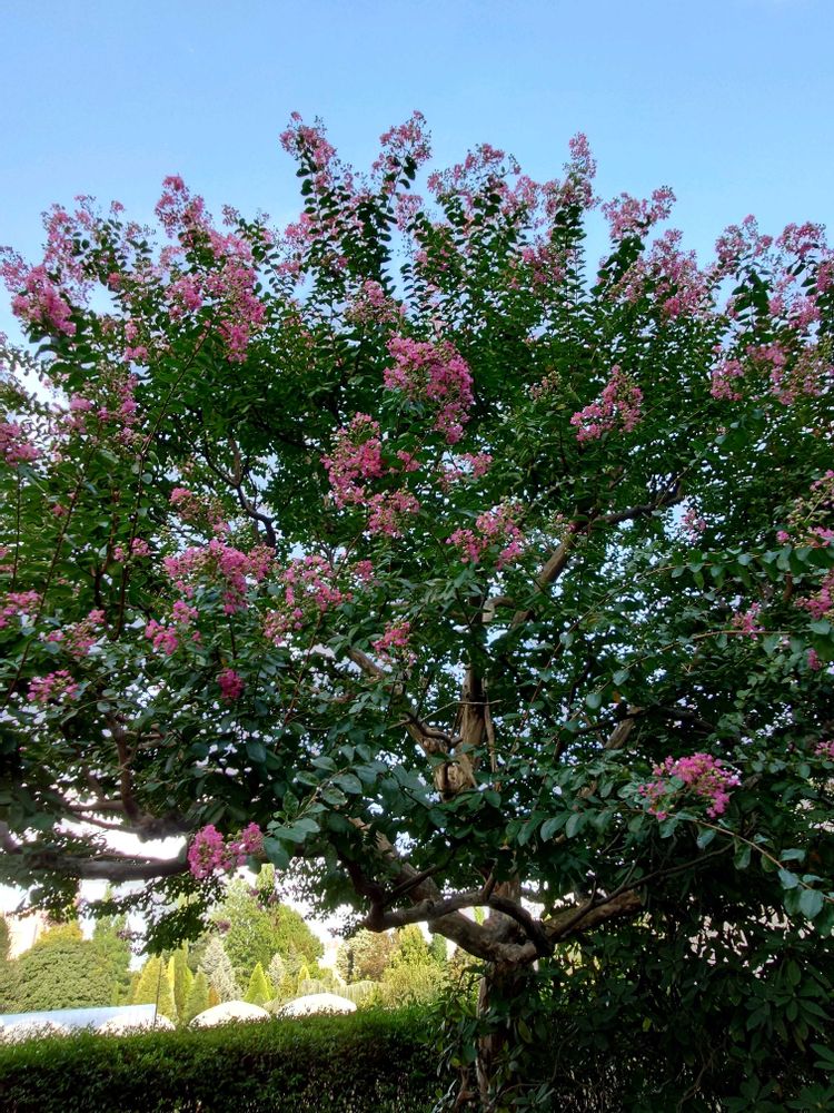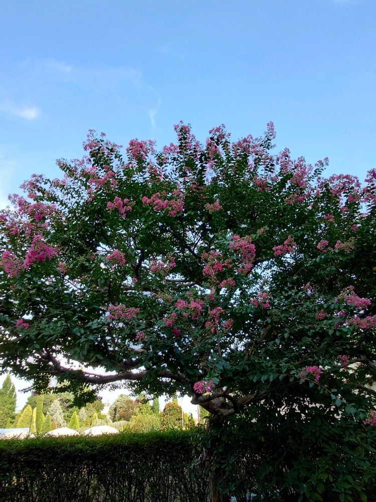 扇子🪭のような形で広がっています。大きなサルスベリの木です🙄 見事です👏👏👏(農業試験場内にて)