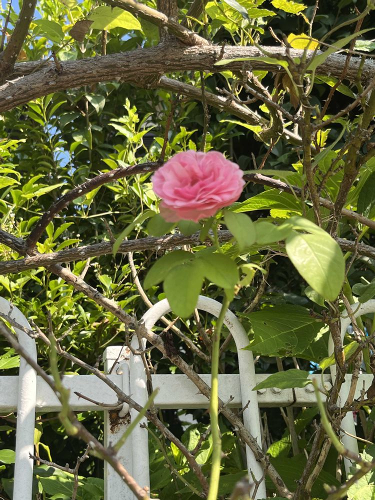 2️⃣お庭を見たらバラが1輪だけ咲いてました。ほとんどのバラはも終わってしまったのに😊