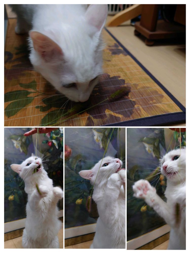 ②③枚目、ᓚᘏᗢ とうふᒼᑋªⁿはエノコログサで遊んでくれました♬.*゚