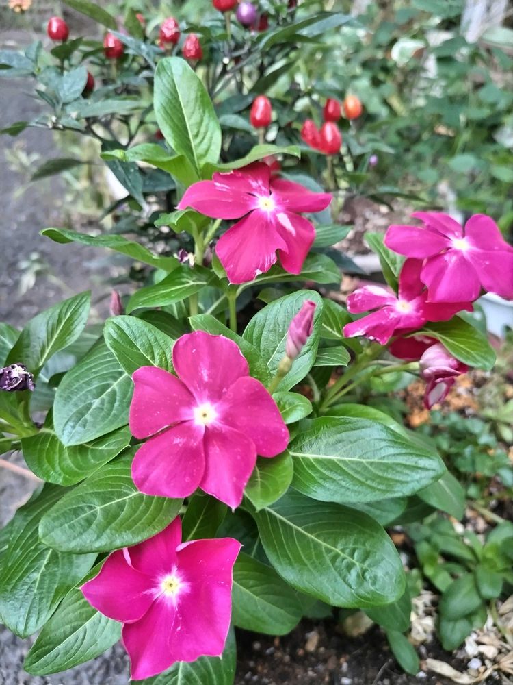 日々草とトウガラシと寄せ植えしてあります
