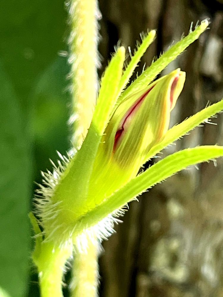 こぼれ種から、芽🌱を出し、赤紫のアサガオ🟣が
