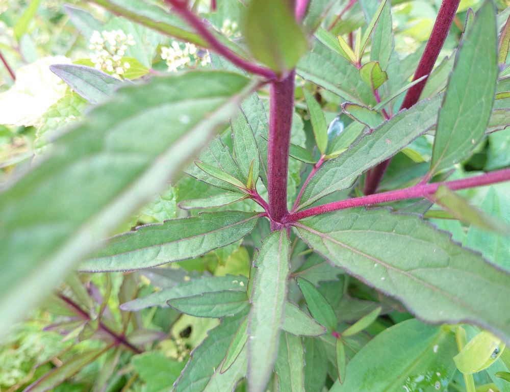 頭花も茎も紅紫色を帯びていますね😊