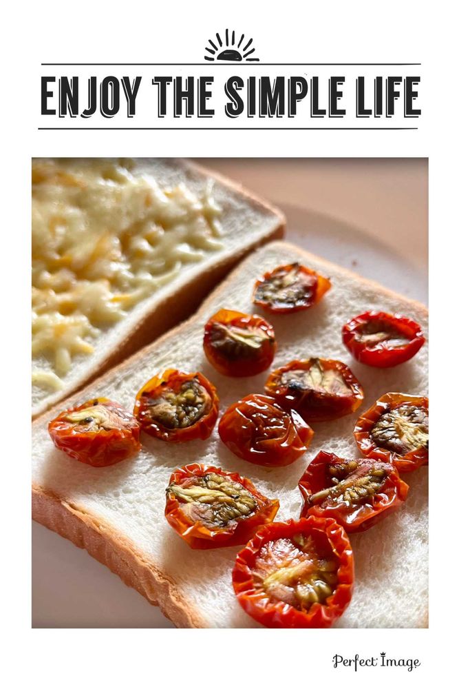 私流、8枚切りの1枚がわ🧀、もう1枚にドライトマト🍅沢山!!