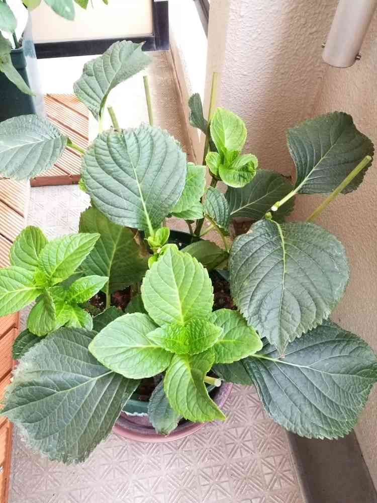 うちの夏色あじさいは、新芽がぐんぐん伸びてきた。
