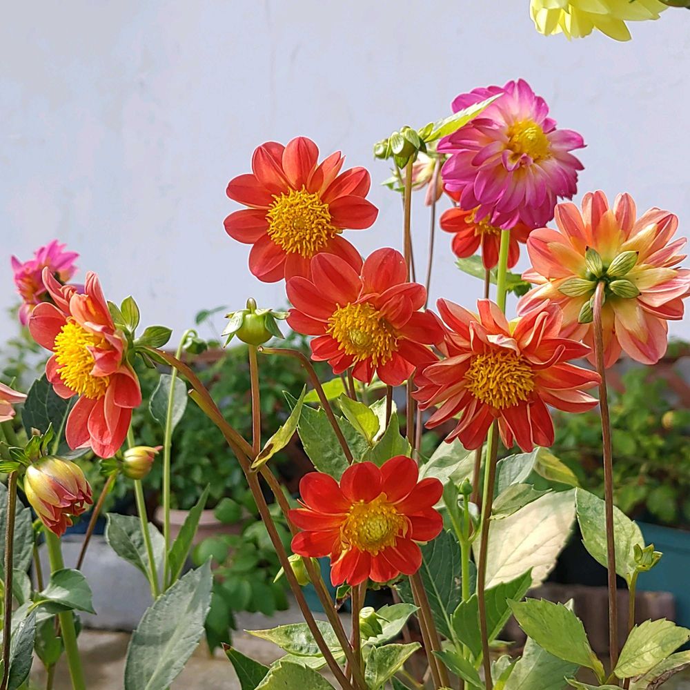 種から育てたダリアが賑やかに咲いてますよ~🎶