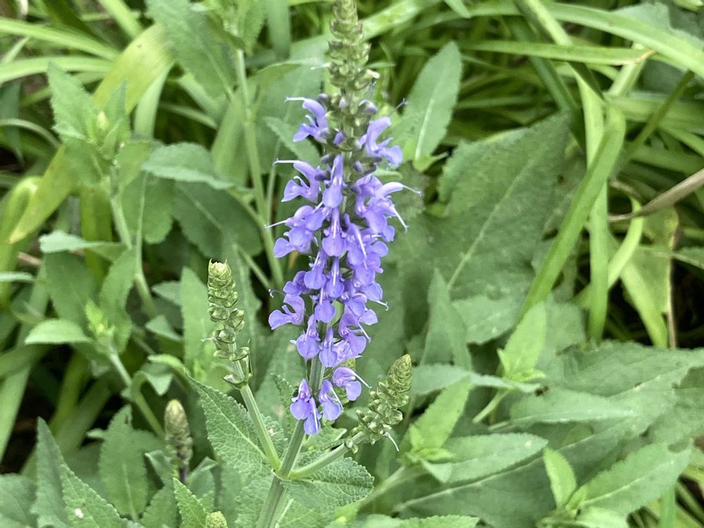 もともとツツジの植え込みなんですが、どこからか種が飛んできてんでしょうね。ツツジの間から紫のお花が咲きます😄