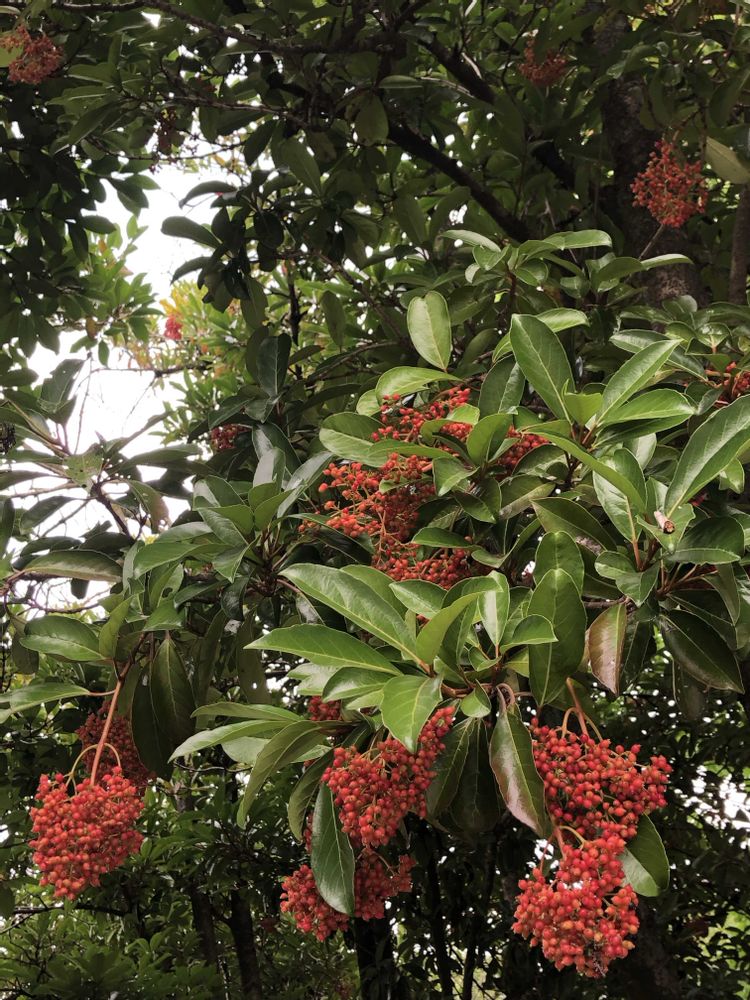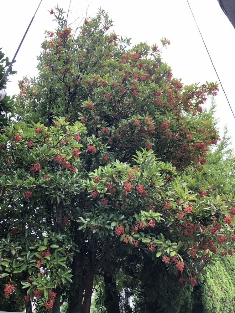 何時も同じ形に剪定されていて✂︎ 目の高さでお花や実を見れる👀 放っておけば大木になる木を🌳垣根の形に剪定する植木屋さんの技も凄いわぁ👏