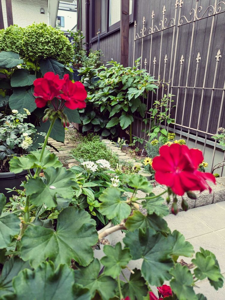 小さな庭,ゼラニウム,赤い花の投稿画像