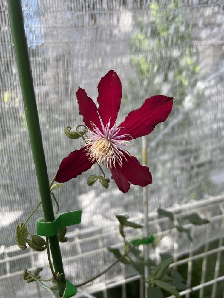 ここ2日くらい水やりしなかった間に、クラマチス レベッカが一輪咲いてくれていました!