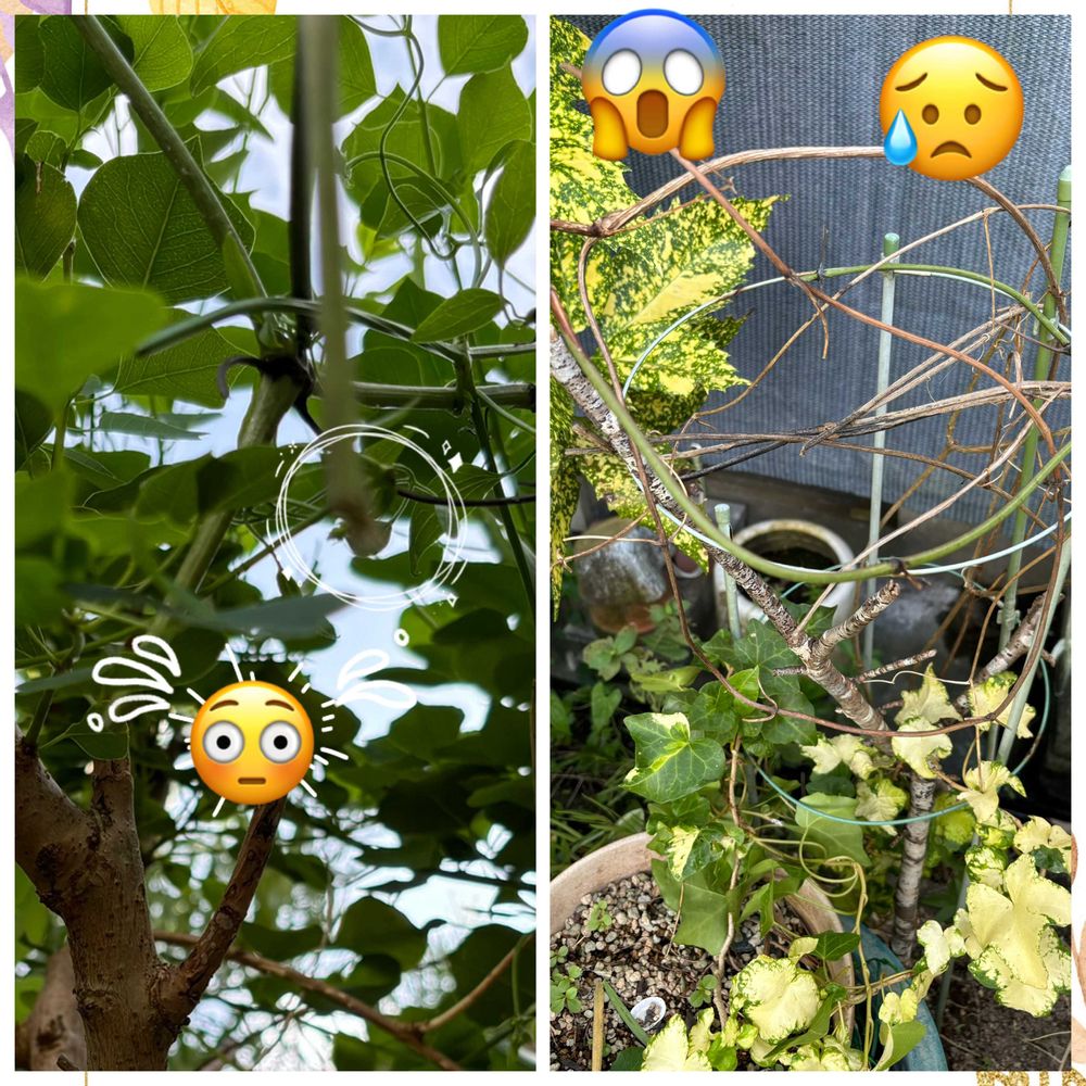 1️⃣庭のさっぱりと引き換えに、センニンソウがバッサリ殺られた😭😭😭😭😭✂️🌿ノウゼンカズラも。🧡😫