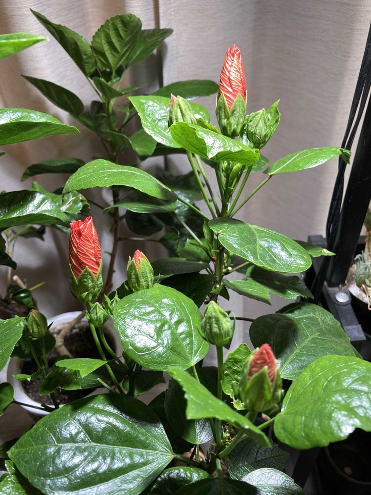ハイビスカス🌺4号機と5号機はなかなか蕾が開かなーい😭もう一踏ん張り頑張って😤😤ハイビスカス🌺LOVE❤️南国🏝️Aloha🏝️🏝️