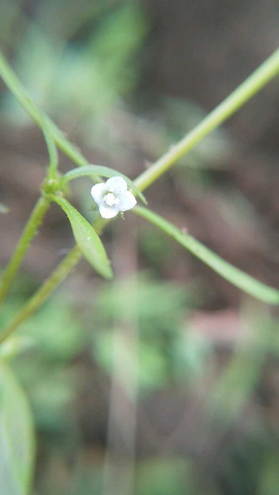 草ぼうぼうで成長芳しくない葱のウネにスマホ📱位の草丈に白い花をさかせていました。