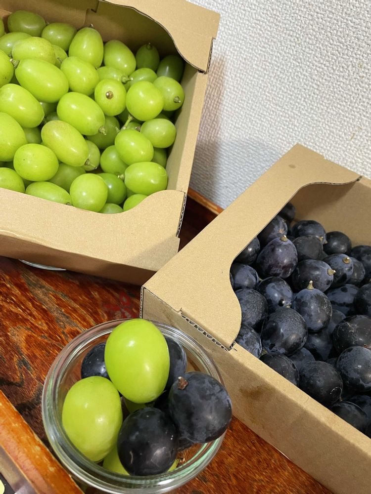 シャインマスカットは安定の美味しさ🟢でしたが😋ナガノパープル🟣は初めて食べましたがとても甘くて美味しかったです🍇