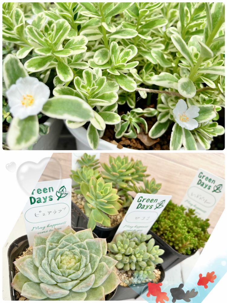 白花のポーチュラカもあるんですね💓斑入りで爽やか〜🌿✨