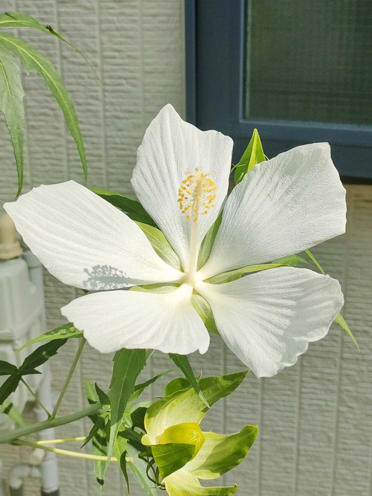 もう一本、赤い花のモミジバアオイもあります。北側のお庭で毎夏紅白のお花を咲かせ、道行く人を楽しませてくれています😊💕