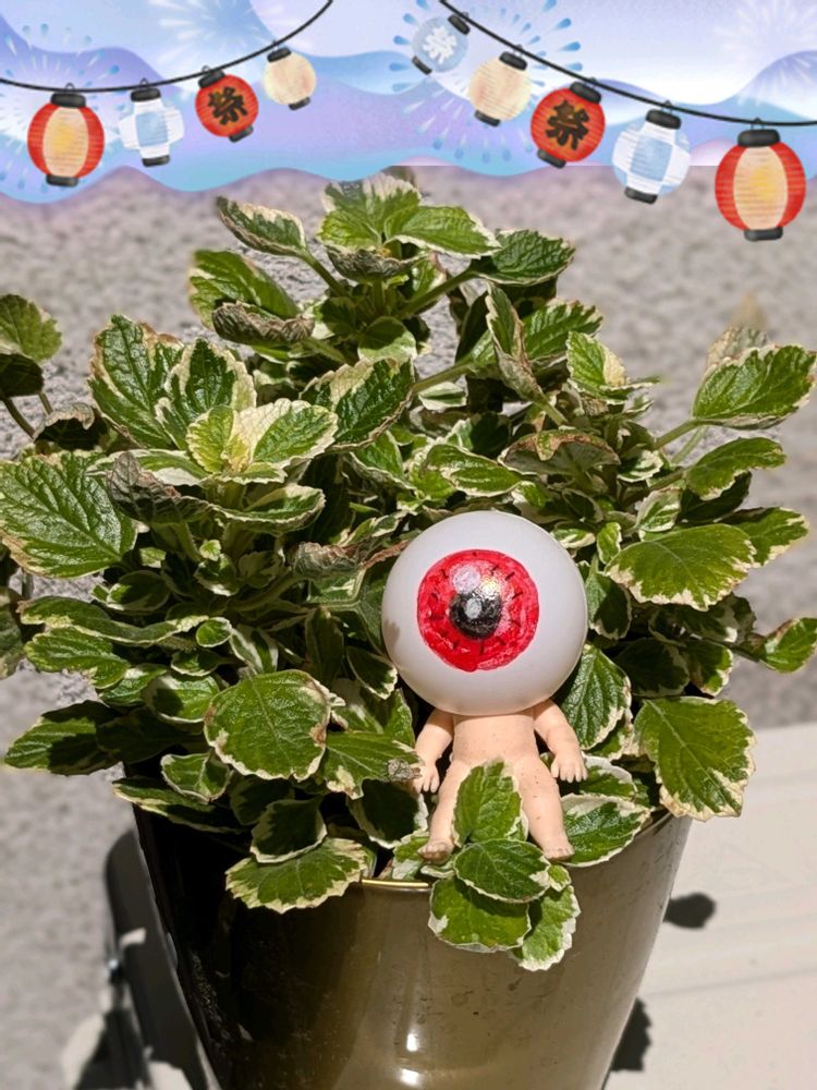 オヤジさんは、キモバブちゃんにピン球で作った目玉を被ってもらったよ〜🍀(^^ゞ