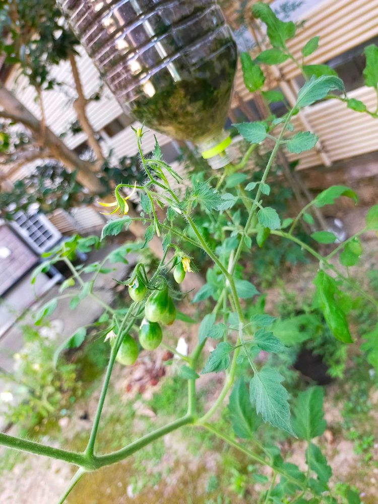 ミニトマトの脇芽,ペットボトル吊り栽培の投稿画像