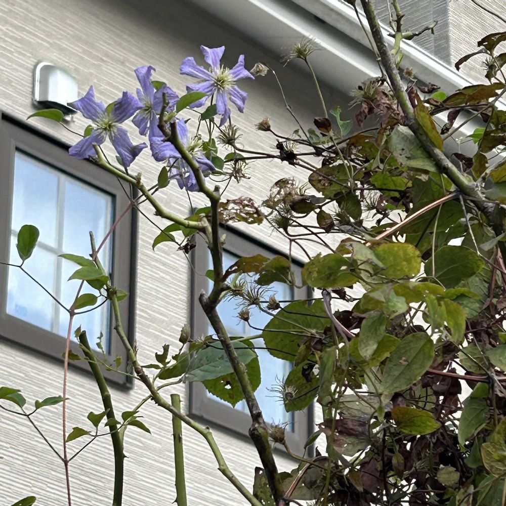 5.2度目のクレマチス プリンス チャールズ 上の方で咲いてた🥹