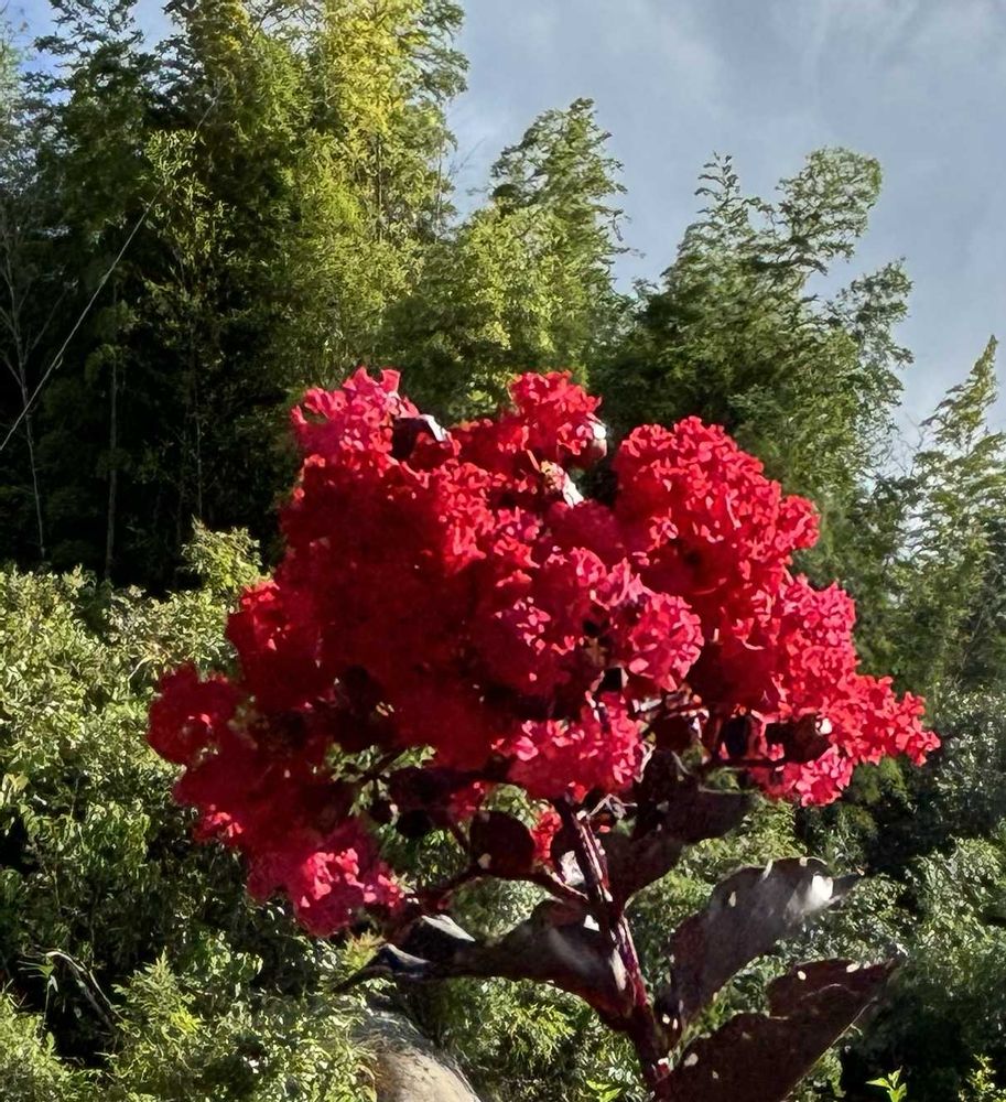 1️⃣銅葉の真っ赤な百日紅が咲き出しましたー。❤️🤎