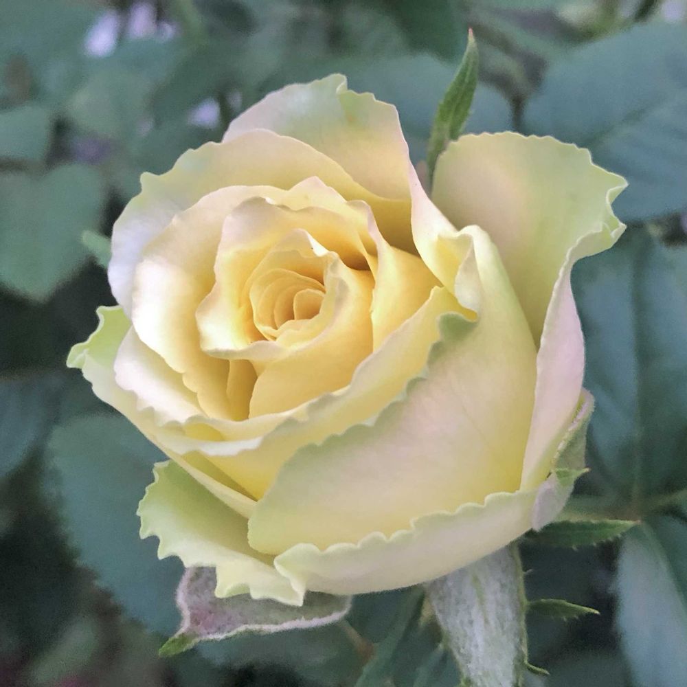 グリーンを帯びたイエロー系のバラで
