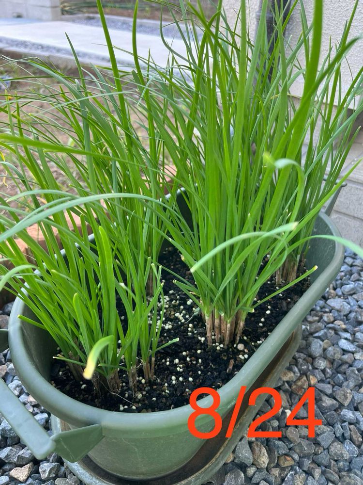 1️⃣2️⃣8/10にボサボサだー!となって収穫したニラが8/24 にはほぼ元通り!成長が早いですね、驚きです😳