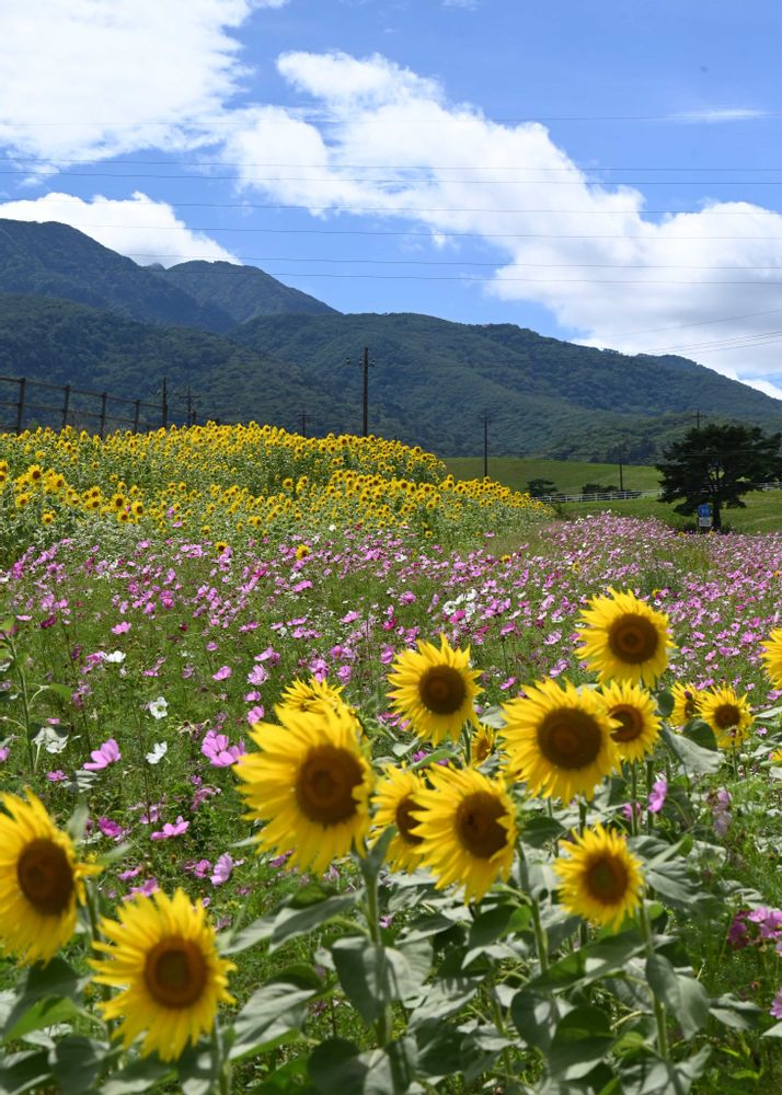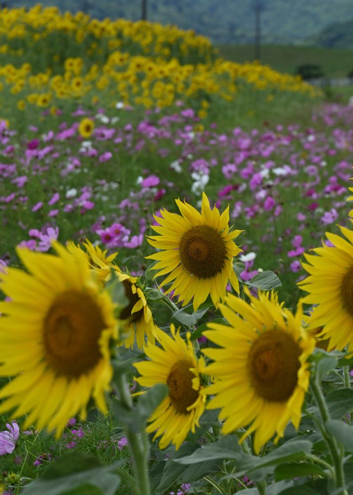 コスモスがもう咲いてるのですね~コスモス&ひまわりで爽やかさを感じます🍃