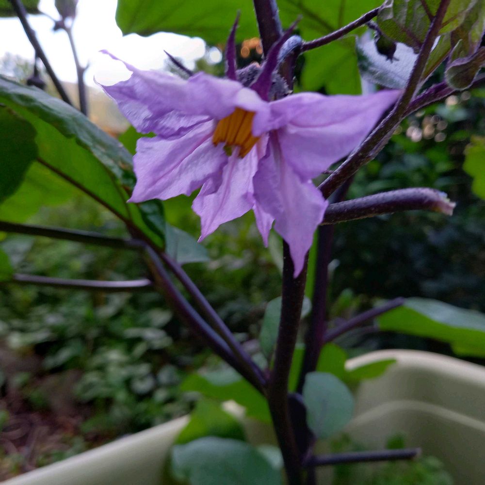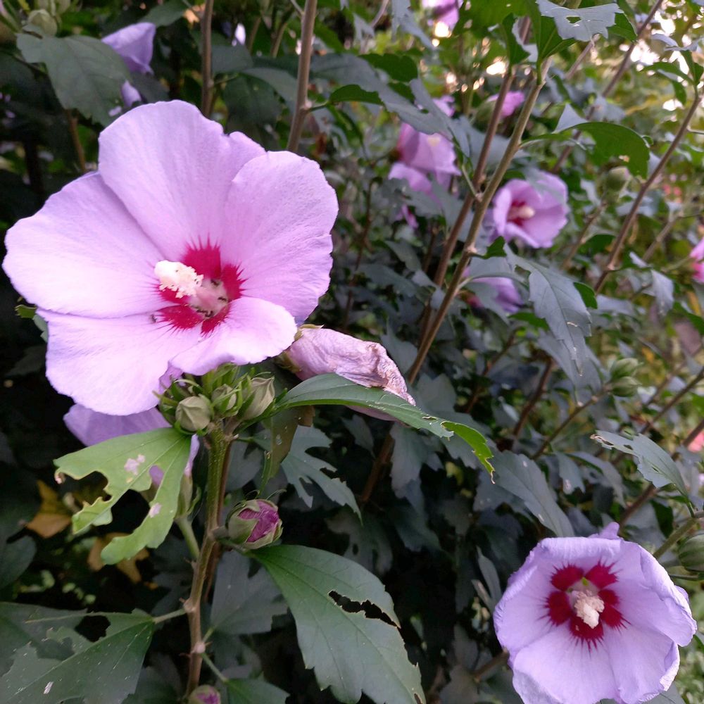 ムクゲ「綺麗でしょ」という顔してます。茄子の花💜美しい色💜