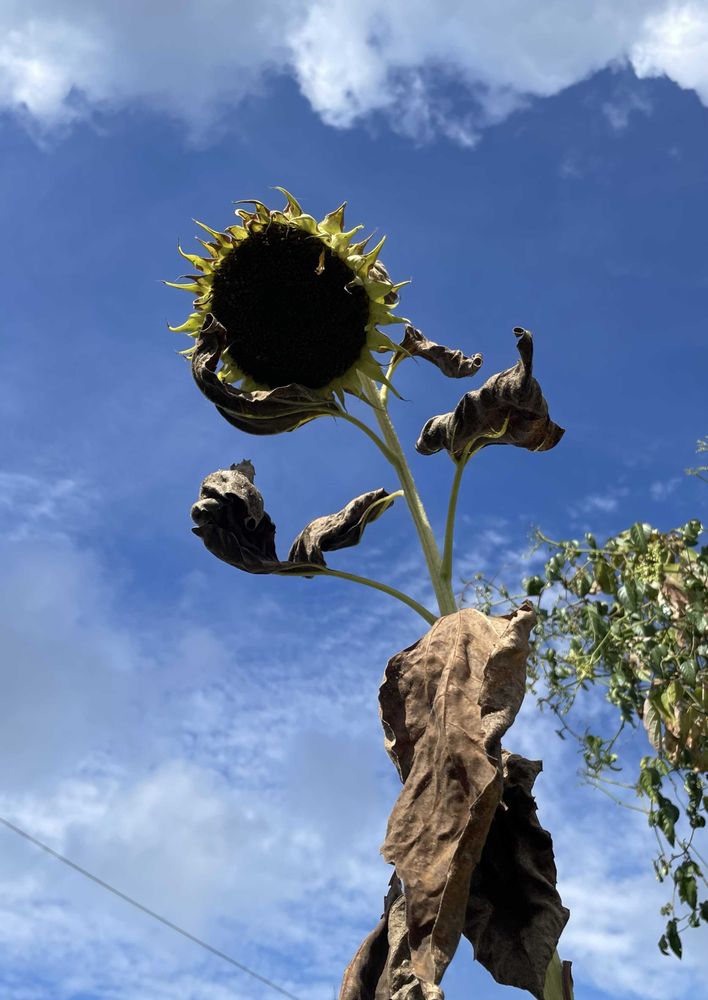 青空と雲がいい感じだったので、ひまわりやカンナと一緒に撮りたいと思って、…