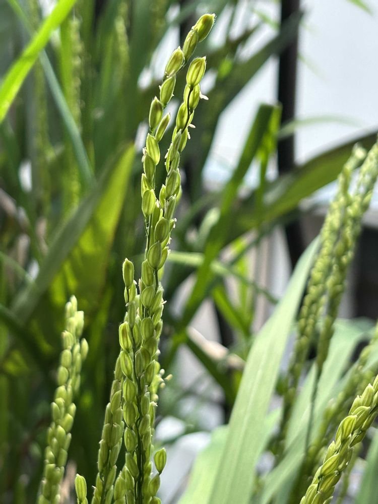 今年もベランダの水稲が穂を出してきています。去年は実が充実して穂が黄金色になる寸前でスズメたちにみつかり散々な目に遭いました。今年は早めに網で囲うなどしなければ!
