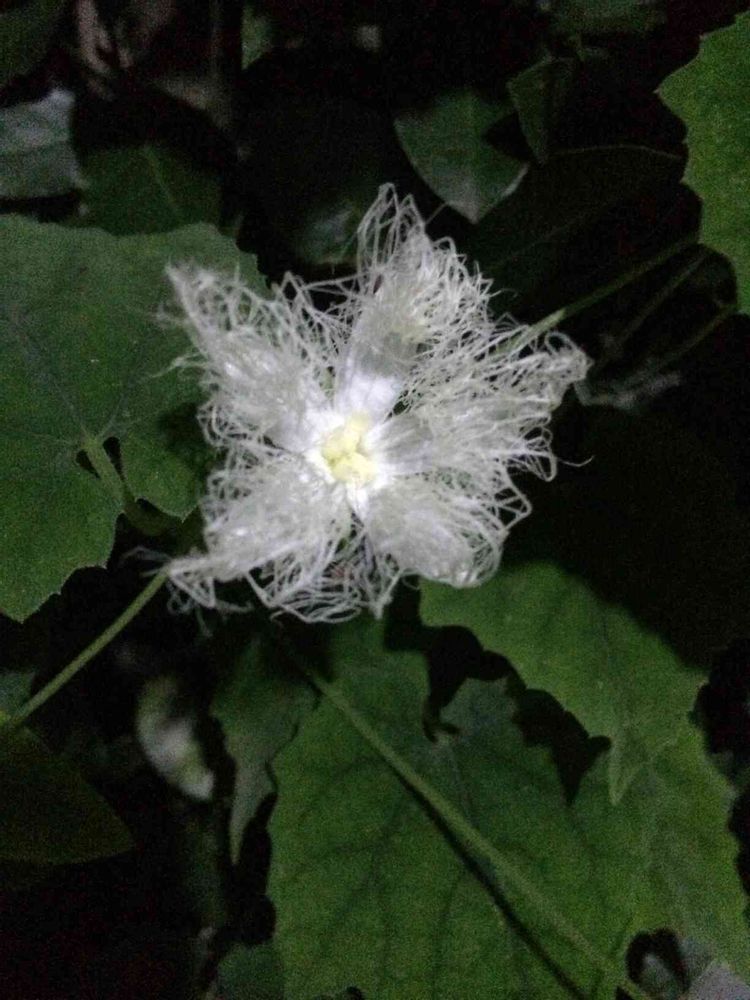 カラスウリの花は夜に咲くのですか?夜の暗いところだと よく見映えしそう🤔 初めて見ました