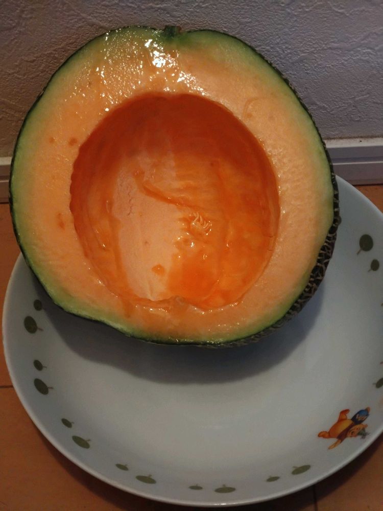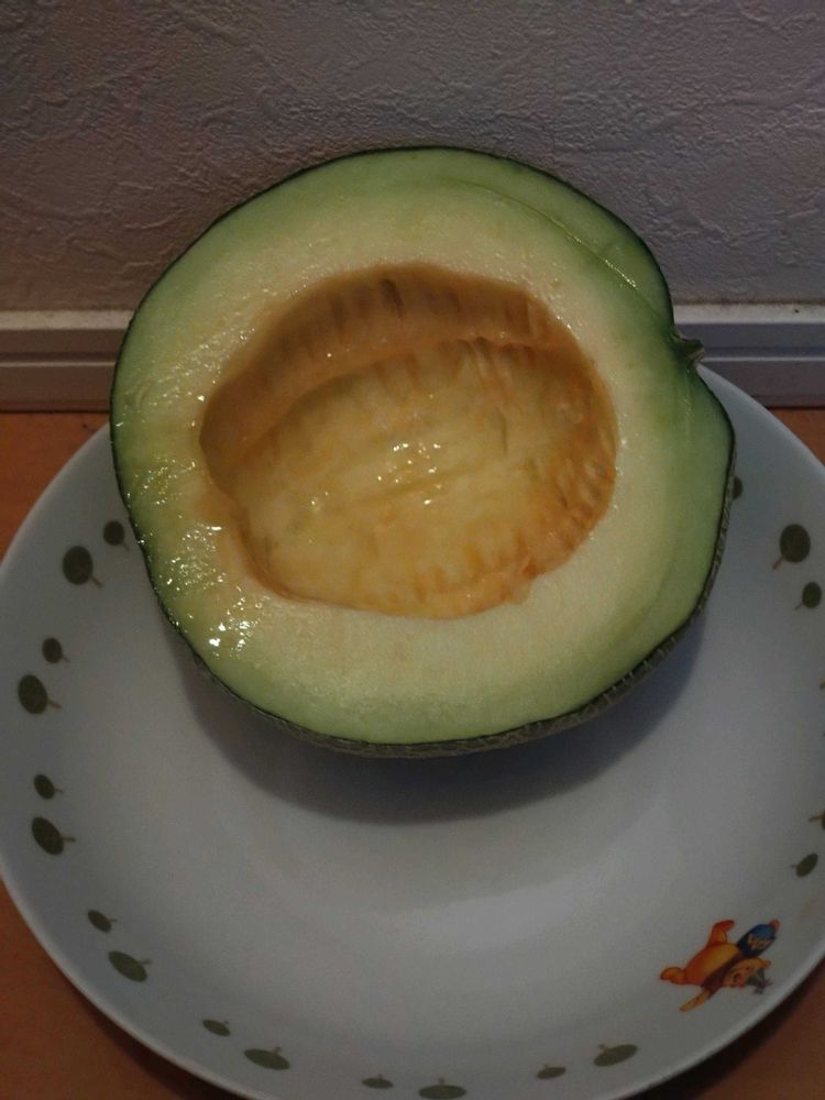 知り合いの果物屋さんから教えてもらったんだけど一世代交配で次は赤肉が出るか青肉が出るかロシアンルーレットみたいです!クインシーメロンは安定の赤肉でしたけどね(^_^;)💦