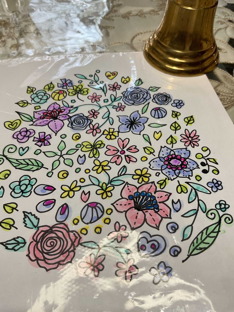 汚して描くだろう〜なぁ🙄💦 と、よぎりましたが、 ダメとも言えず、横で