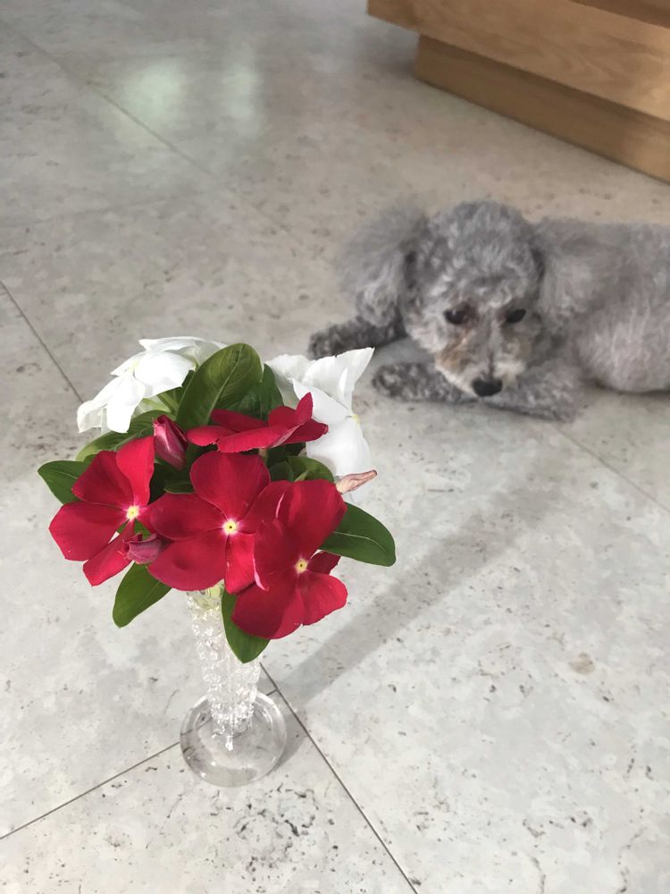 ニチニチソウのフラワーカクテルとワンコ🐶
