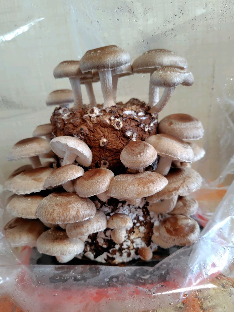 少し前に上げたシイタケ、昨日(5日目)の状態です🍄🍄🍄