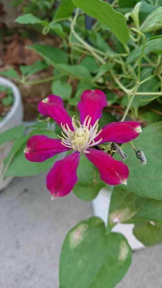 春の一番花が咲いたあとに病気で葉っぱがすべて枯れてしまったクレマチス H.F.ヤングですが、炭そ病用の薬が効いたのか、その後新たに出てきた新芽は再発せず順調に育ちました。