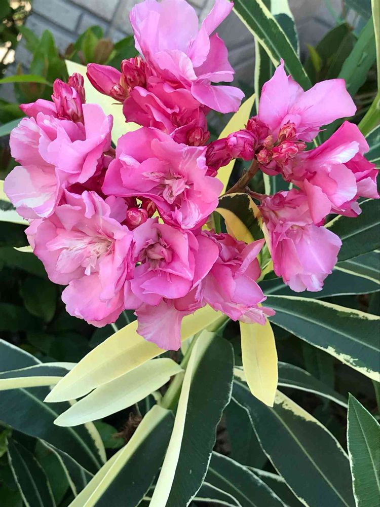 夾竹桃 バリエガタム咲きました。八重の花&斑入り葉で気に入ってます。