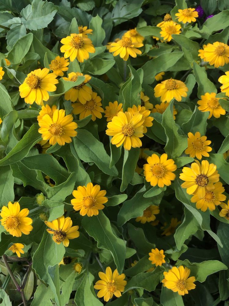 道路沿いの花壇にて、黄色い小さなお花「メランポジューム」をパチリ!📸🌼🌿😊😄🌞✌️