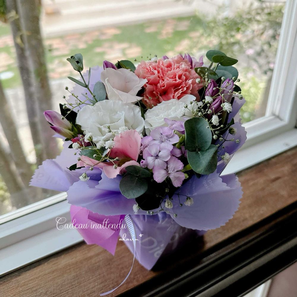 数日前のお花とはまた違った色味でどちらもステキな花束✨