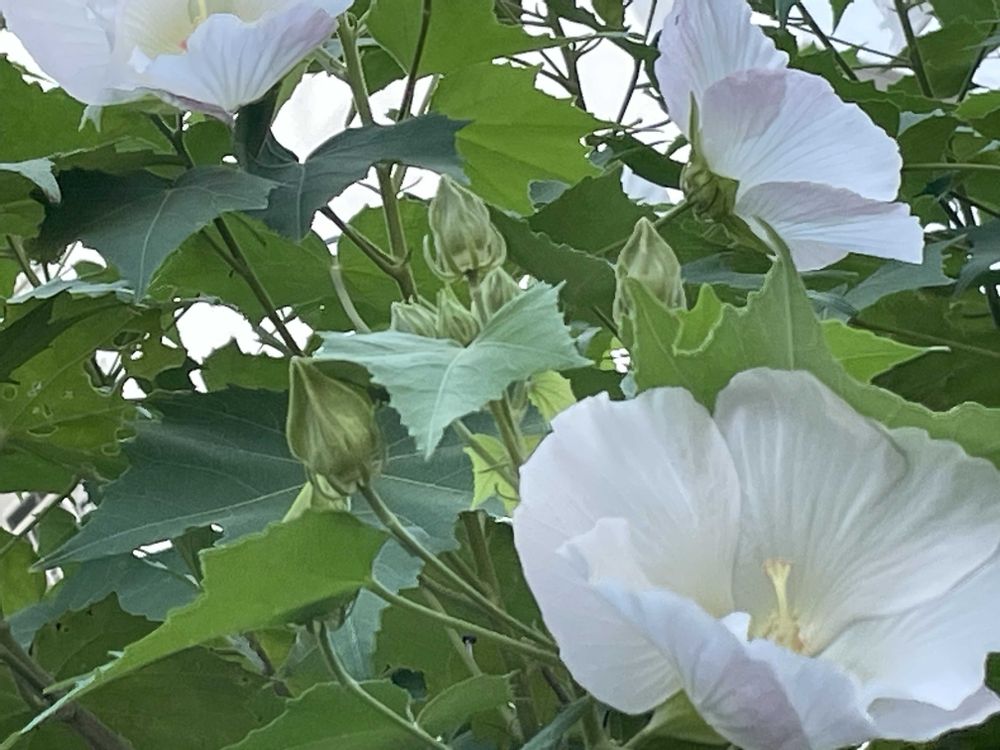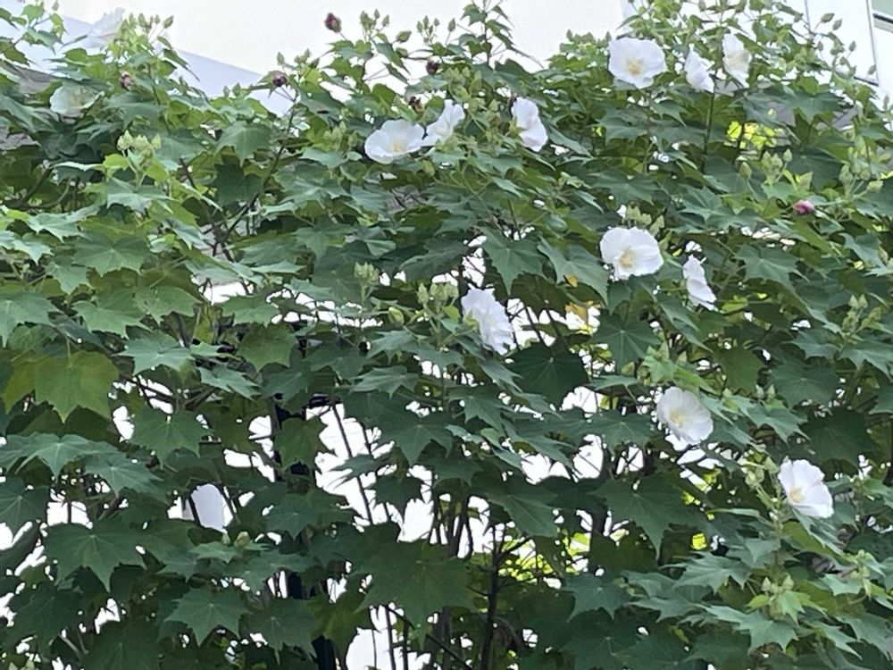 今年(去年?)切り戻されなかったせいか、ずーっと花が咲かなかった酔芙蓉🌸