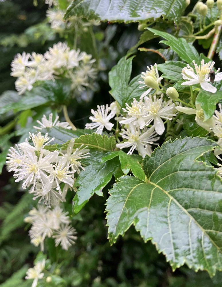 朝靄のなかにボタンヅルの白いかたまりが浮かび上がってちょっと幻想的な景色でした💚🤍💚
