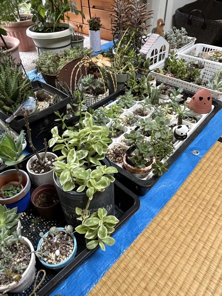 畳の上にブルーシートを敷いて、避難している多肉達ですか⁉️