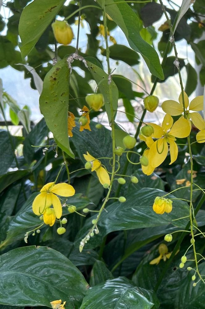 黄色の可愛い花がシャワーのように下に垂れて咲いていました